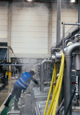 réutiliser à chaque étape, selon des techniques q de retraitement des eaux. Aujourd’hui, un litre d’eau neuf est réemployé trois cents fois sur le site.